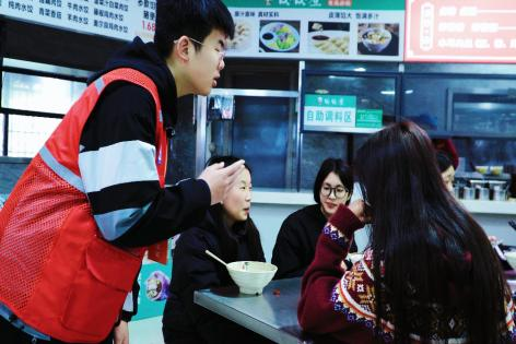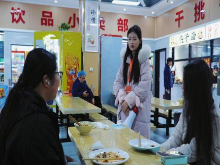 食堂门口,学生干部们以“一对一倡议”的方式,邀请过往同学在倡议墙上签下名字。他们耐心传递着“雷锋精神始于小事,文明就餐贵在行动”的理念,号召人人参与收餐盘行动。