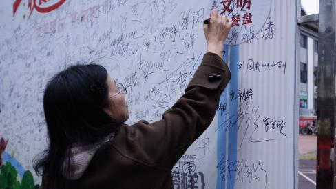 渐渐地,墙上密密麻麻布满了名字。签下名字的同学,还能免费领取一份小礼品。有同学笑着说:“本来就会收,今天签了名、领了礼品,更有仪式感了!”签下名字的那一刻,收获的不仅是喜悦,更是一份对自己的承诺——从今天起,主动收餐盘,我做到,我坚持。