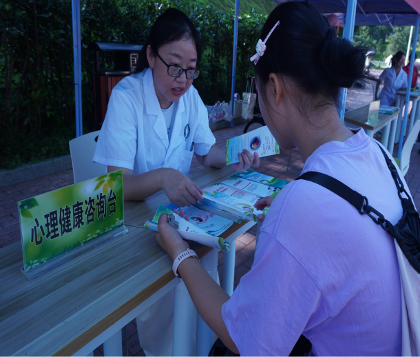 与此同时,宣传资料发放与知识普及板块也在有序进行。该板块由杨秋红及吉首分院的3-4名工作人员或志愿者负责,他们准备了大量精心设计的心理健康宣传手册和科普小读物,内容涵盖睡眠健康、情绪管理、压力缓解、心理疾病预防等多个与学生日常生活密切相关的方面。工作人员和志愿者们主动、友好地向过往的职院学生发放宣传资料,并热情地为学生简要介绍此次心理健康主题活动的内容,引导学生关注自身心理健康,学习心理健康知识。