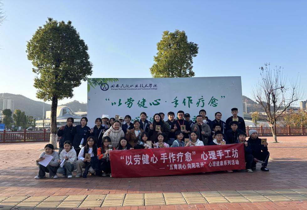 2025年11月27日,湘西民族职业技术学院学生处心理健康教育指导中心在学生服务中心三楼成功举办了“五育润心,向阳花开”系列心理健康教育活动之“以劳健心·手作疗愈”第二期心理手工坊。本次活动旨在将劳动教育与心理健康教育有机融合,通过沉浸式的手工体验,帮助学生舒缓压力、增进交流、提升积极心理品质。